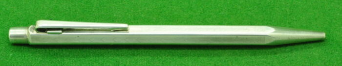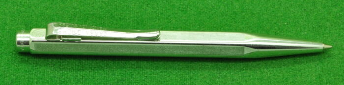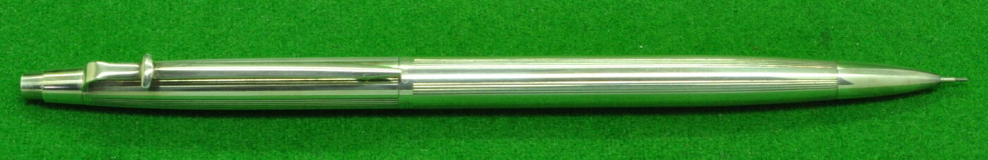 Caran d’Ache Ecridor Pencil in Chevron Pattern Silver fill . In Near MINT condition. Engraved “Hommage de Caran d’ache” Superb quality Item