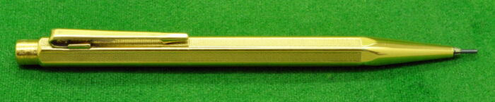 Caran d’Ache Ecridor Pencil in Barley Pattern Gold fill . In Absolute MINT condition. Engraved “Hermes”. Superb quality Item