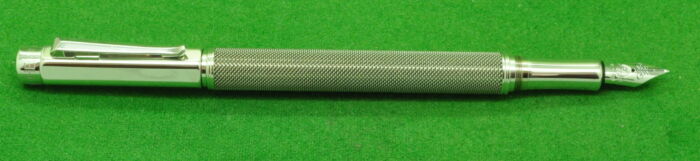 Caran d’Ache Varius Ivanhoe Metal fountain pen . In Absolute Mint Unused Condition. Cartridge fill but fitted with converter. Fitted with the original 18kt white gold medium tipped nib.