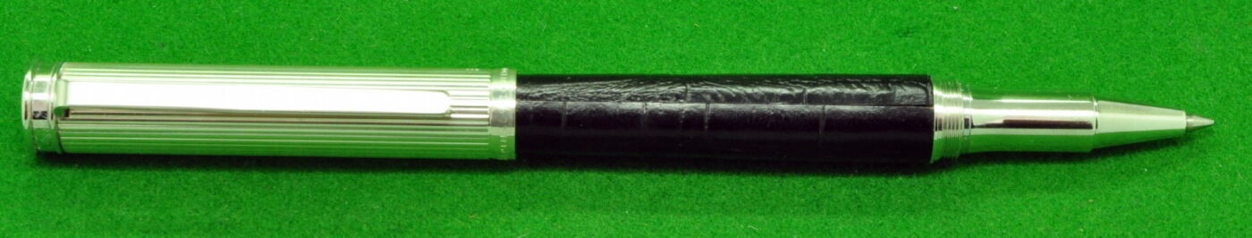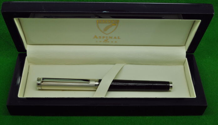 Beautiful Solid Silver capped and Leather Aspinal Ballpoint . In MINT Condition in original Box. Most Likely made by Faber-Castell