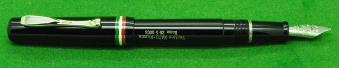 RARE Limited edition Visconti VERTICE NATO-RUSSIA 2002 Summit Fountain Pen in Black Lucite with Platinum fill trim. Number 512 of only 2002 made. Fitted with the original white 14kt gold, semi flex medium tipped nib