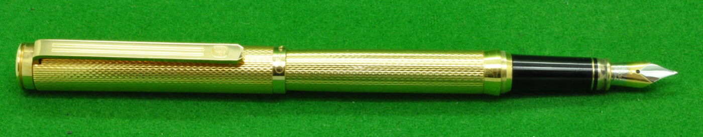 Scarce Colibri Fountain Pen in gold filled fine barley Pattern. In Mint condition. Cartridge fill. Fitted with the original medium tipped nib.