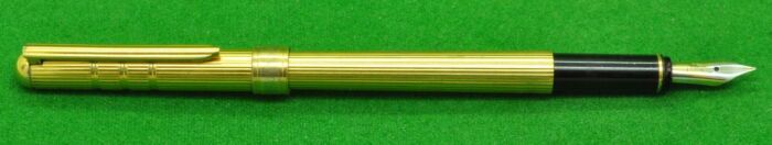 RARE Yves Saint Lauren Fountain Pen in Gold fill. In Good condition but with some plate loss to cap band. Cartridge fill. Fitted with the original medium tipped nib.
