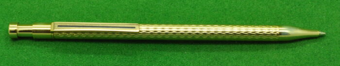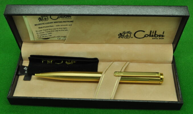 Stunning Large Colibri Ballpoint in Gold fill fine Barley Pattern. MINT Unused in original box with papers. High Quality Item