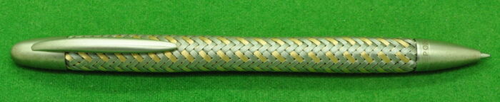 Scarce Porsche Design Tec Flex Ballpoint in Stainless and Gold filled mesh and Palladium fill. In Mint Unused Condition. Heavy, very stylish Pen made by Faber Castell