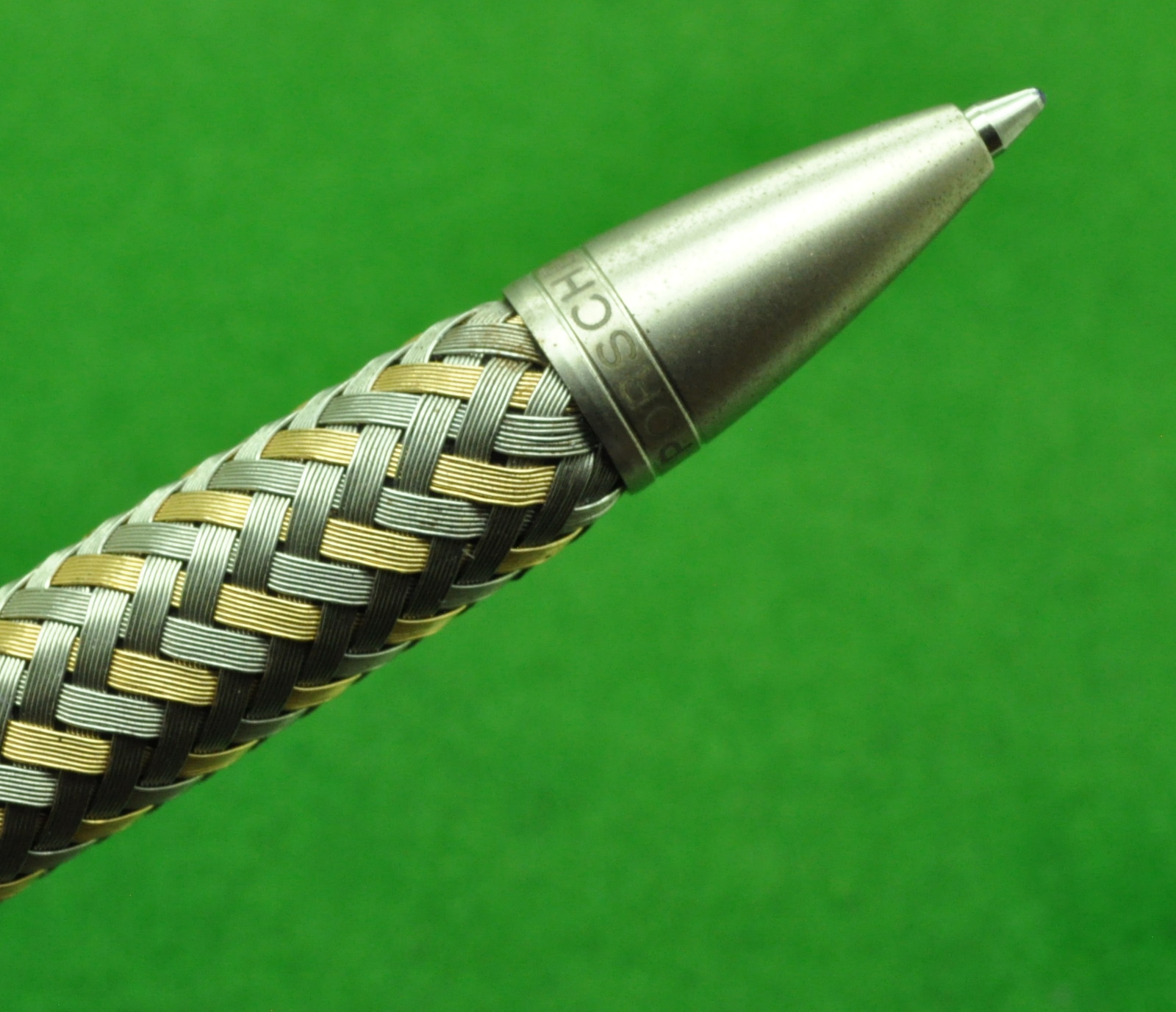 Scarce Porsche Design Tec Flex Ballpoint in Stainless and Gold filled mesh and Palladium fill. In Mint Unused Condition. Heavy, very stylish Pen made by Faber Castell