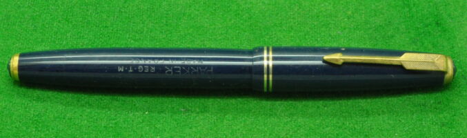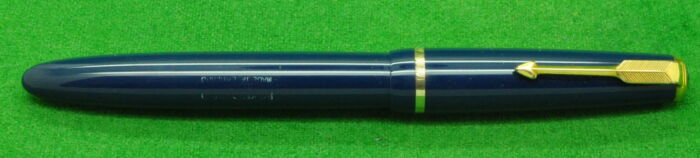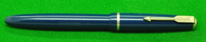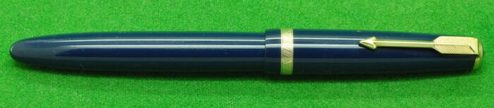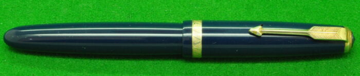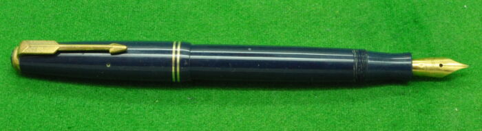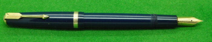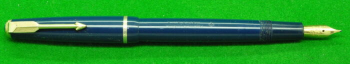 Parker Duofold Demi in Blue with Gold fill trim. In Absolute MINT condition. Aerometric fill. Fitted with the original 14kt Gold Medium Tipped nib.