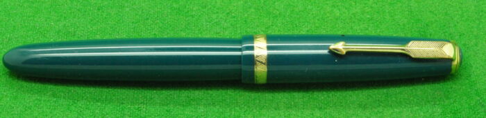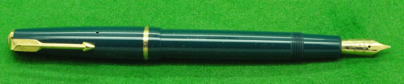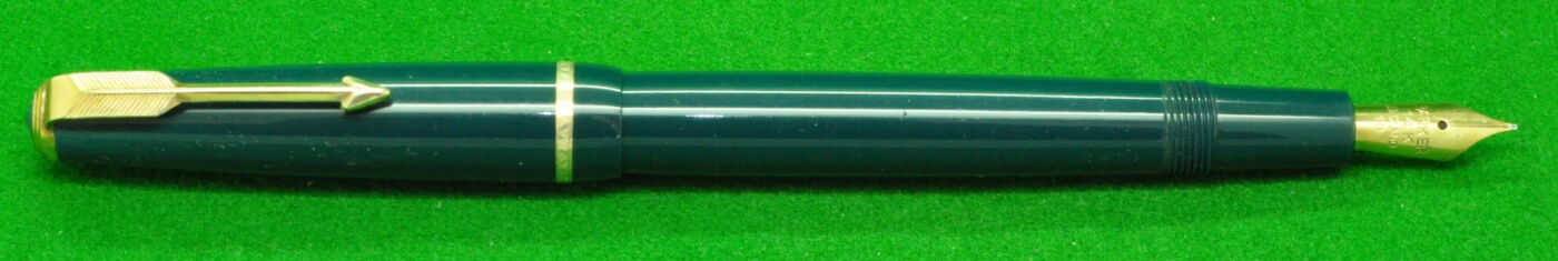 Parker Duofold Demi in Green with Gold fill trim. MINT. Aerometric fill. Fitted with the original 14kt Gold Medium Tipped nib