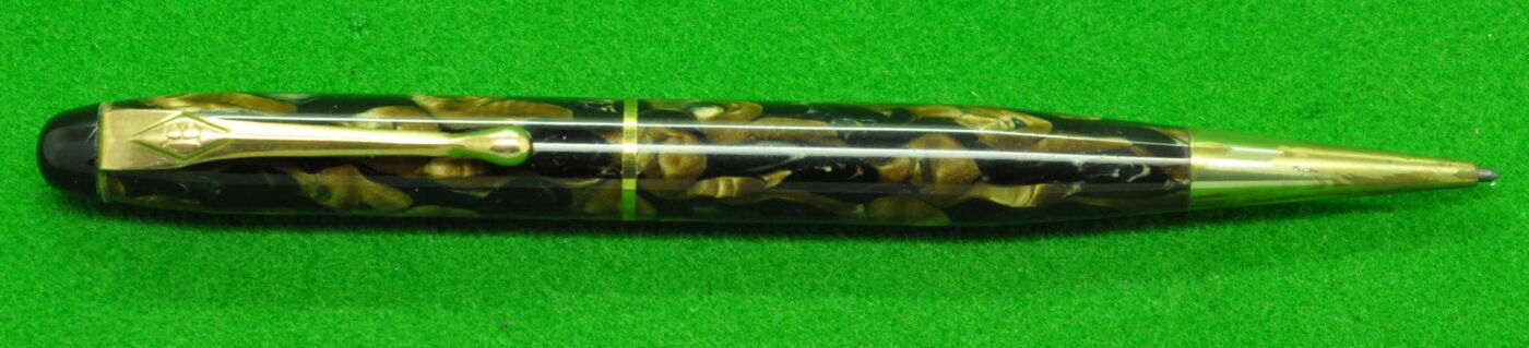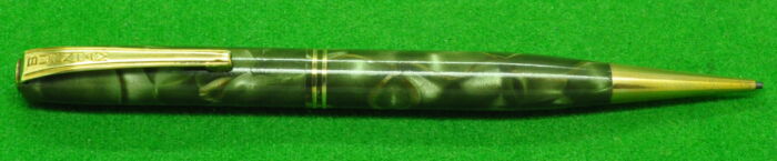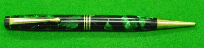 Burnham Pencil in Pearl Green and Black Marble with gold filled trim. No Markings but made by Burnham.