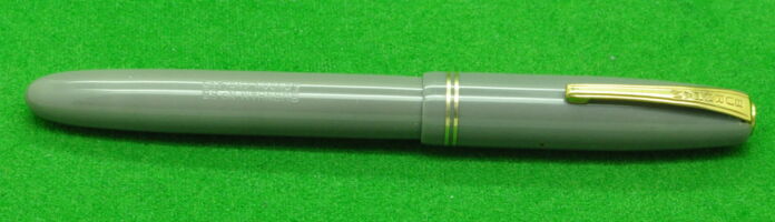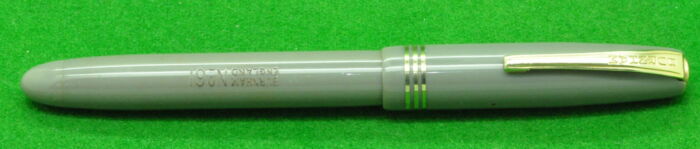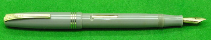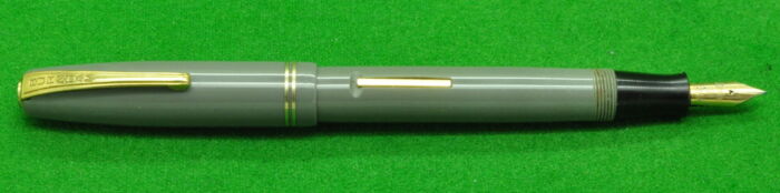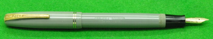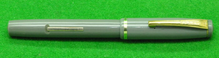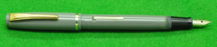 Burnham 61 in Grey with gold filled trim. In remarkable MINT condition. Fitted with the original semi flex 14kt gold medium tipped nib.