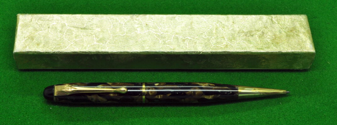 Burnham Pencil in Pearl Brown and Black Marble with gold filled trim. IN MINT Condition in original box.