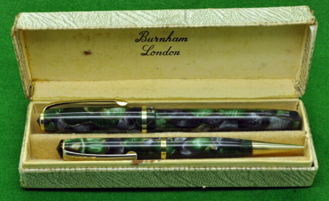 Throughout it’s history Burnham constantly competed with Conway Stewart and is best known for high quality Red Ripple pens of the ’30s and beautiful Marble effect plastic pens of the ’40s and ’50s