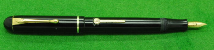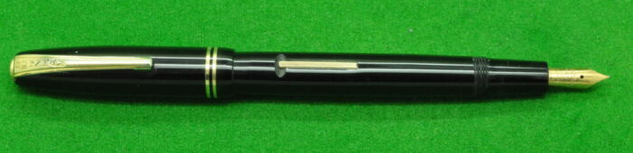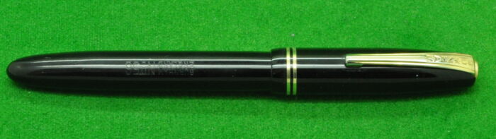 Burnham 56 in Black with gold fill trim. In MINT condition. Fitted with the original 14kt gold fine tipped nib.