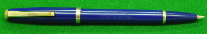 Mentmore Diploma in Royal Blue with gold filled trim. In MINT Condition. Button fill. Fitted with the original super smooth 14kt gold medium tipped nib