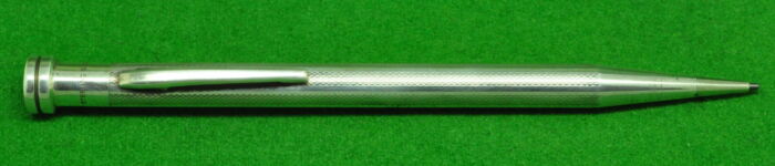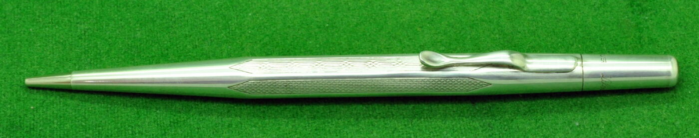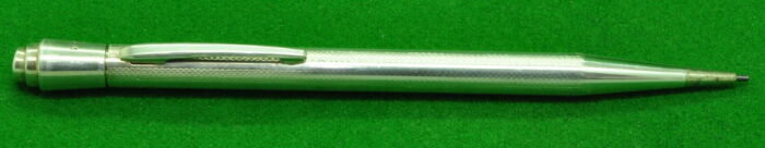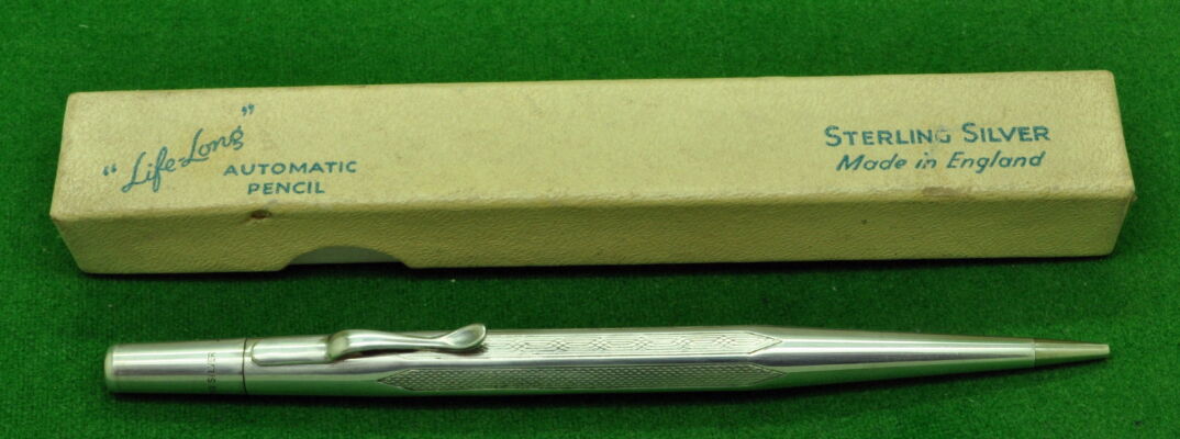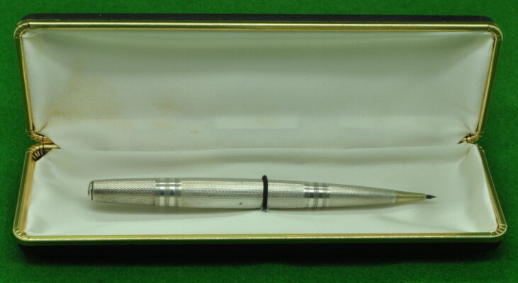 Sterling Silver Lifelong Pencil with Diamond pattern panels. In Absolute Mint Unused Condition in original Box. Full size pencil measuring 131 long.