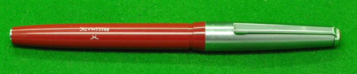 NEW OLD STOCK Mentmore Platignum “Gold Nib” in Crimson and Stainless. Pressmatic Fill. Never Inked. Fitted with the original 14kt gold , super smooth, medium tipped nib. Rare opportunity to buy a vintage quality pen in New condition.