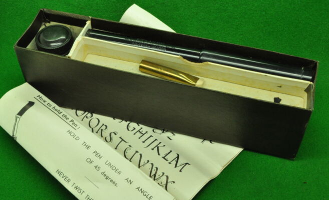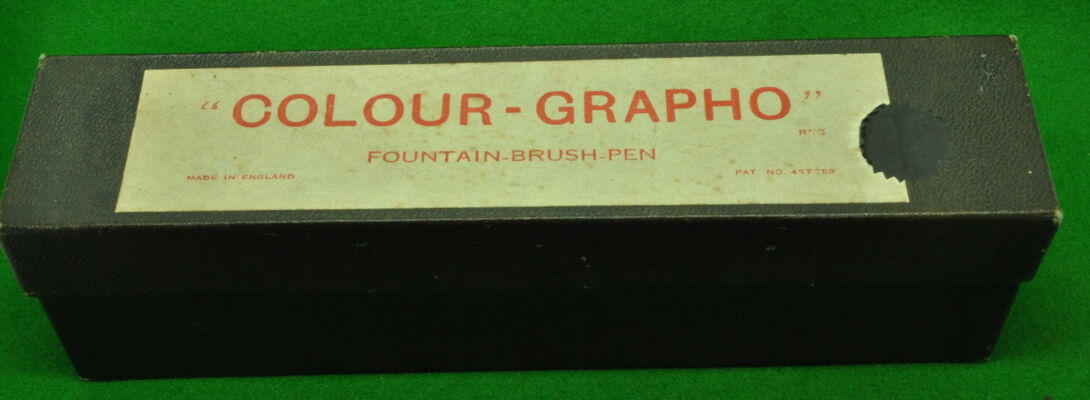 Extremely rare Colour-Grapho Fountain Brush Pen. Made By Mentmore. In Black with Nickel Silver trim. Very Large Pen with original Felt Tip that provides very thick lines for Calligraphy. In remarkable MINT Condition with the original felt Point, paperwork and box. Fully restored with new sac. Ready to write.