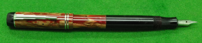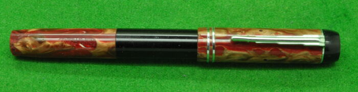 Mentmore Platignum Visi-Ink in Burgundy and Bronze Marble with Nickel Silver trim. In MINT Condition. Fitted with the original super smooth, semi flex, Medium tipped nib