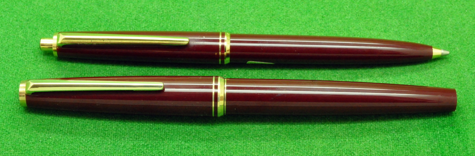 Montblanc Classic SET in Scarce Bordeaux with With Gold filled trim. Fountain Pen and Pencil. Both in Absolute Mint Unused Condition. Fountain Pen fitted With the Original Super Smooth, semi flex 14kt gold medium tipped nib.
