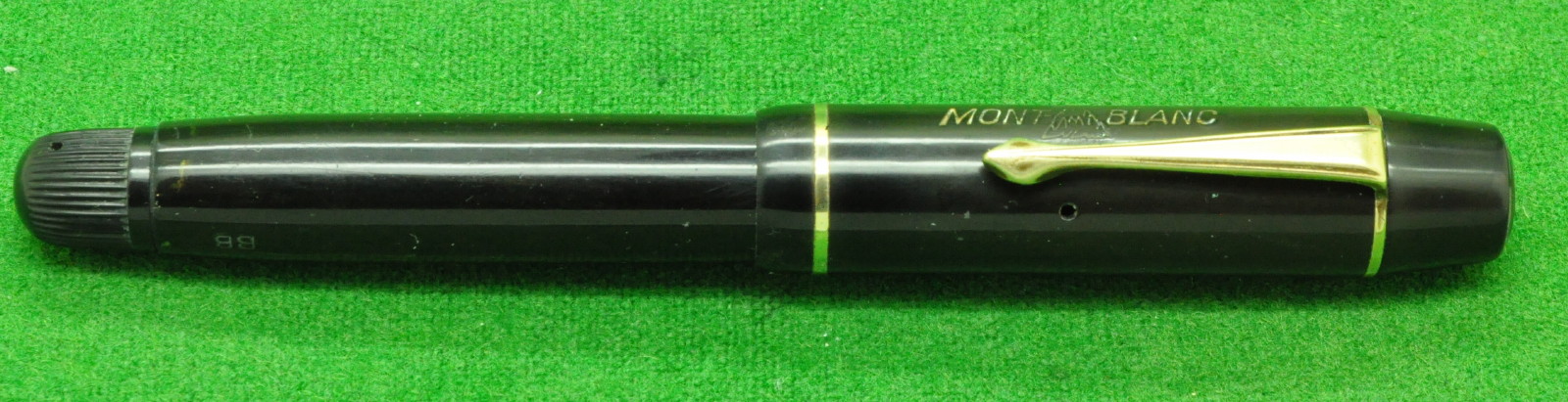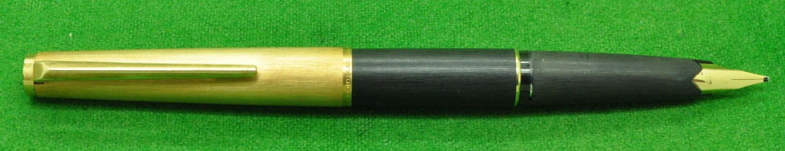Scarce Montblanc 224 in Matt Black With Satin Gold fill cap. Cartridge fill but fitted with original Converter. In Mint Condition. Fitted With the Original Scarce, 14kt gold Ultra Broad, semi flex italic nib giving a wonderful writing style.