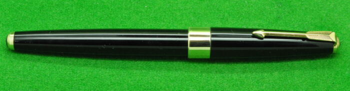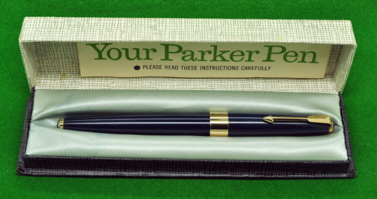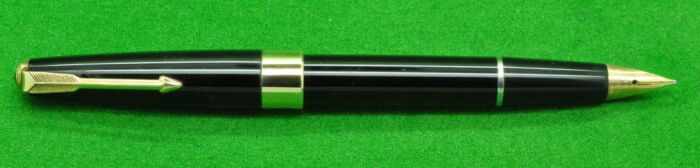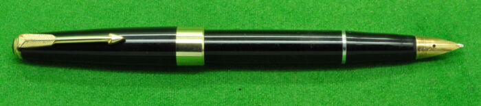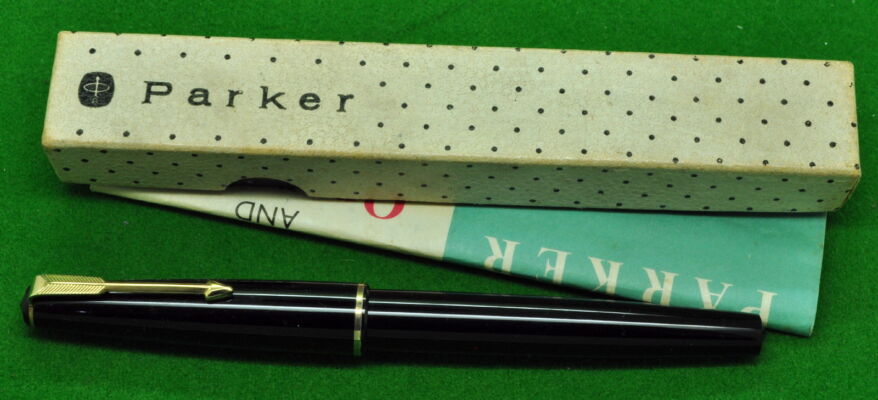 MINT Parker 17 In Black with gold fill trim. Aerometric fill. In Original Box. Fitted with the original 14kt medium tipped nib
