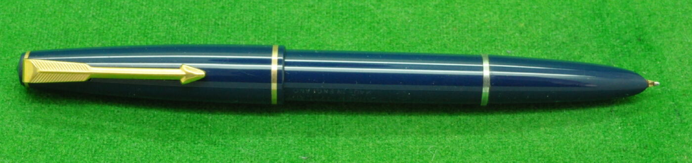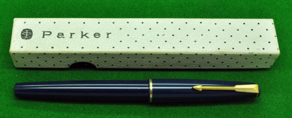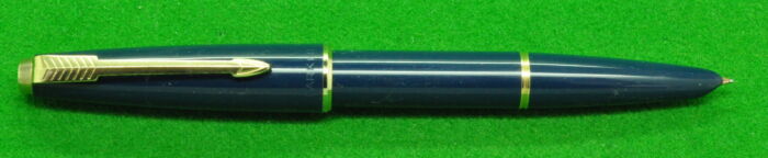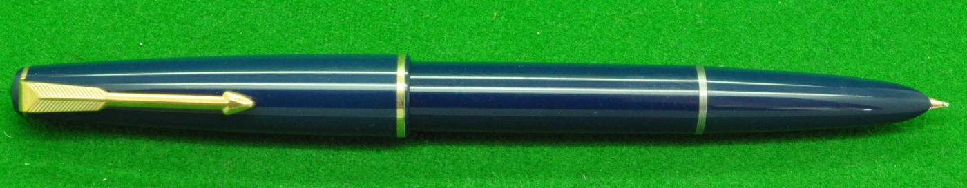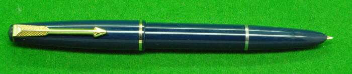 MINT Parker 17 In Blue with gold fill trim. Aerometric fill. In Original Box. Fitted with the original 14kt medium tipped nib