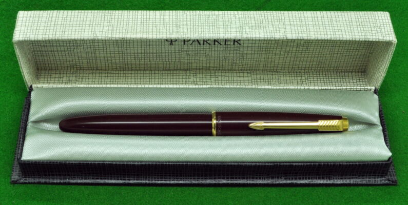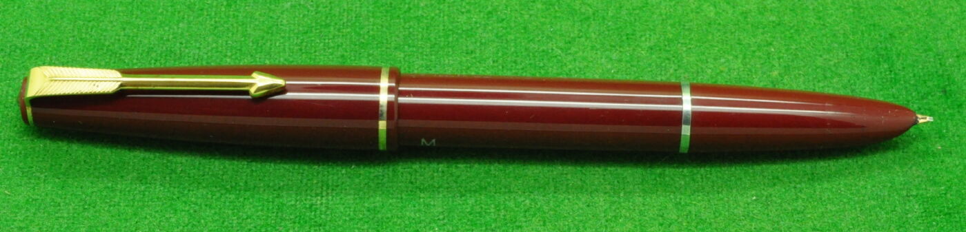 MINT Parker 17 In Crimson with gold fill trim. Aerometric fill. In Original Box Fitted with the original 14kt medium tipped nib