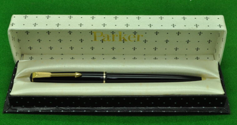 RARE Parker 17 Ballpoint In Black with gold fill trim. In Mint condition in original box