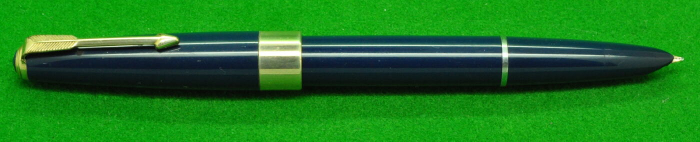 Early Parker 17 Super Duofold in Blue and Gold fill. In MINT Condition . Aerometric fill. Fitted with the original, Beak Shaped 14kt gold Super Smooth fine tipped nib