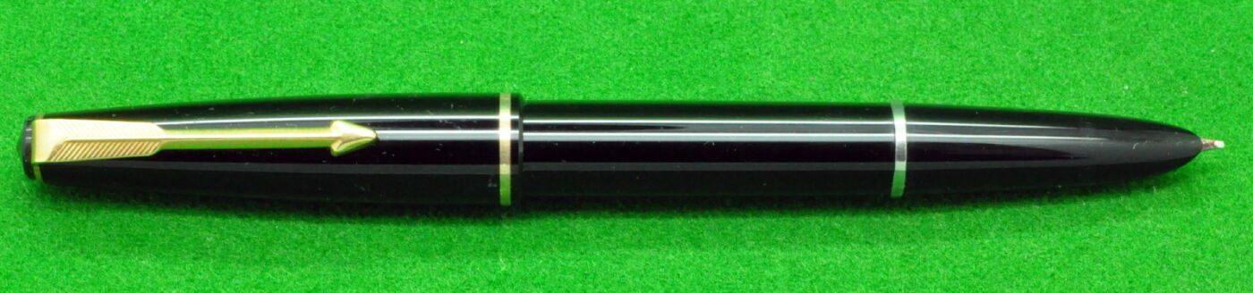 Early Parker 17 Super Duofold in Black and Gold fill. In Absolute MINT Condition . Aerometric fill. Fitted with the original, Beak Shaped 14kt gold Super Smooth Medium tipped nib