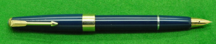 Parker 17 lady in Blue with gold filled trim. This pen is in remarkable MINT Unused condition. Fitted with the original 14kt gold medium tipped nib. Aerometric fill