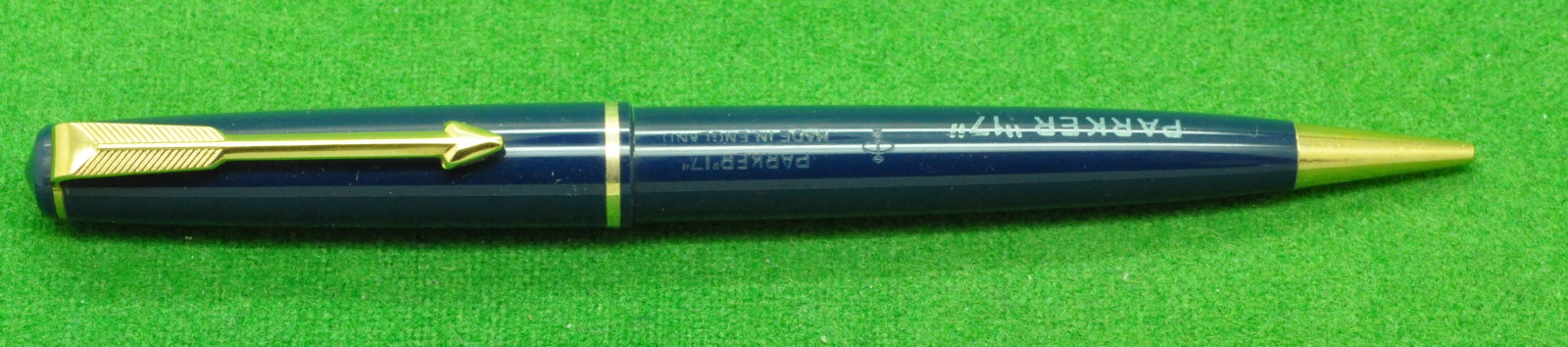 Parker 17 Pencil in Blue with gold fill trim. In Near Mint Condition