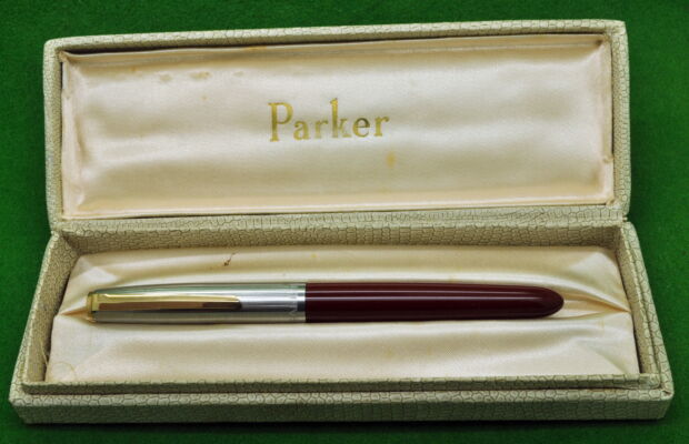 Parker Introduced the 21 in 1948 as a School pen based on the Parker 51 design. All are Aerometric fill with Steel nibs. There are 2 distinct versions the Mark 1 and Mark 2. Although not quite the same quality as Parker 51’s they are still very reliable writers and some  colours are quite scarce and therefore collectable.