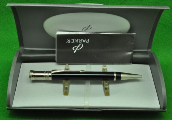 Parker Duofold Centennial Ballpoint in Black with Chrome Trim. In Absolute MINT Unused Condition in original box.