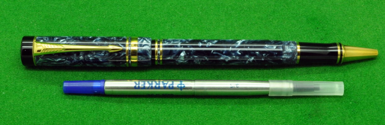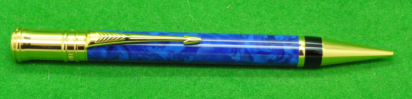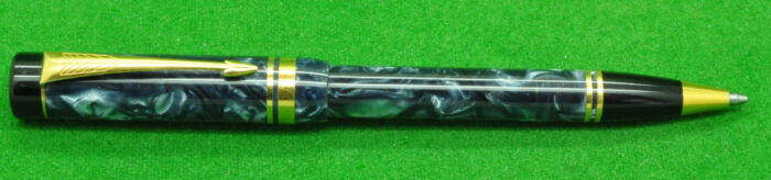 Early Parker Duofold Centennial Mk 1 Ballpoint in Blue Marble with gold filled trim. In Near Mint Condition.