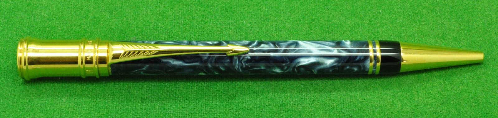Early Parker Duofold Centennial Mk 1 Ballpoint in Blue Marble with gold filled trim. In Near Mint Condition.