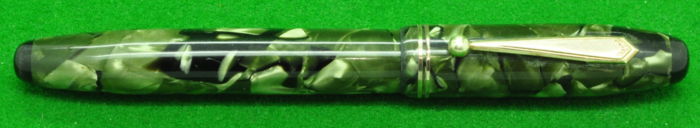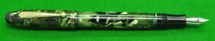 Beautiful Parker Parkette De Luxe in Black lined Pearl Green Marble with Gold filled trim.  In absolute Mint Condition.  Fitted with the original  Super smooth semi flex  medium tipped Nib