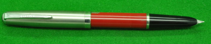 Rare Late Parkette in Red with Stainless Cap. In Perfect condition. Fitted with the original medium tipped nib. Lever fill