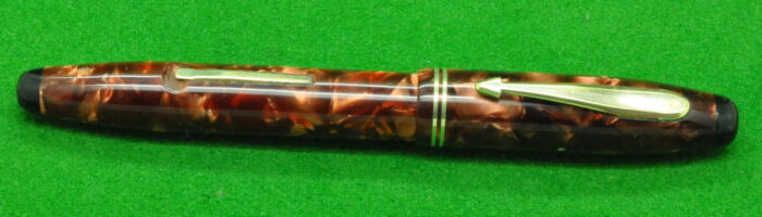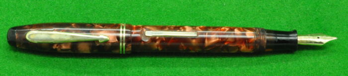 Parker Parkette in Bronze Marble with Gold filled trim. In MINT condition. Fitted with the original 14kt full flex broad tipped nib giving a wonderful writing style.