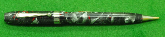 Extremely Rare Parker Parkette Combination in Grey Marble with Scarlet Flecks. Nr MINT Condition with just a small amount of Brassing on the cap Band. Combination Fountain Pen and Pencil. Lever fill. Fitted with the original 14kt gold , semi flex medium tipped nib.