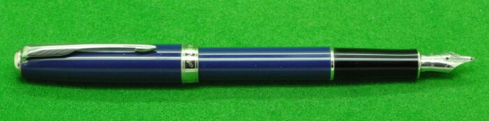 Sonnet Fountain Pen in Blue Laque with Chrome trim. In MINT Condition. Fitted with the original 18kt gold semi flex, medium tipped nib