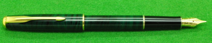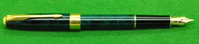 Sonnet in Green Laque with gold filled trim. In Absolute MINT Condition. Fitted with the original 18kt semi flex medium tipped nib