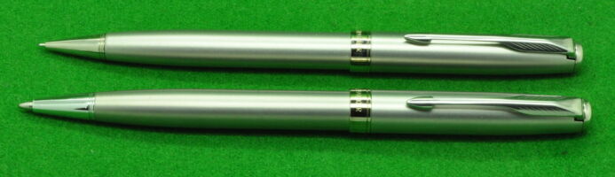 Parker Sonnet SET in Satin Silver with Chrome Trim. Both In absolute MINT Unused condition. Ballpoint and Pencil.
