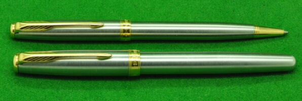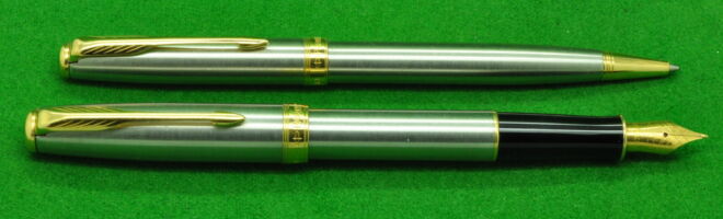 Parker Sonnet SET in Stainless and Gold fill. Fountain Pen and Ballpoint , Both In absolute MINT Unused condition. Fountain Pen fitted with the original Medium tipped Nib