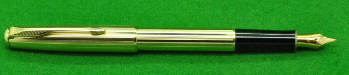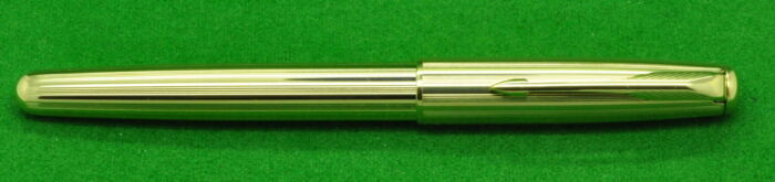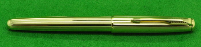 Parker Sonnet In Gold fill – Fine Line Pattern. In MINT condition. Fitted with the original medium tipped nib.