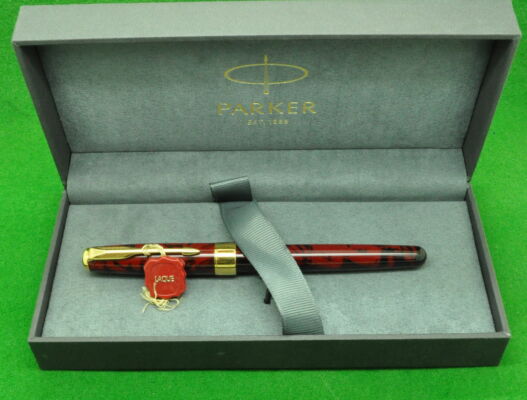 Sonnet in Stunning Premier Red Laque with gold filled trim. In Absolute MINT Unused Condition in original Box. Fitted with the original medium to broad tipped nib