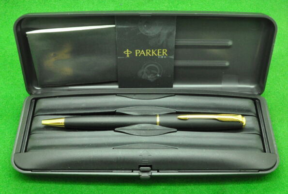 Beautiful and scarce Sonnet Ballpoint in Dimonite G – A Very Tough Gold fill coating developed by Parker. Beautiful MINT UNUSED BOXED Heavy superb quality pen