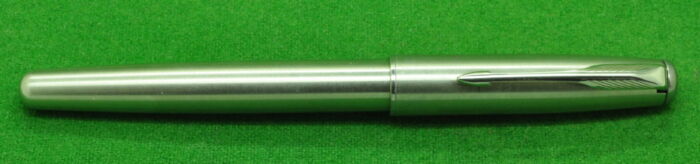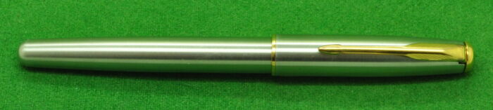 Parker Sonnet Flighter in Stainless with Gold filled trim. In Mint Condition. Fitted with the original ultra Smooth, Semi Flex medium tipped nib