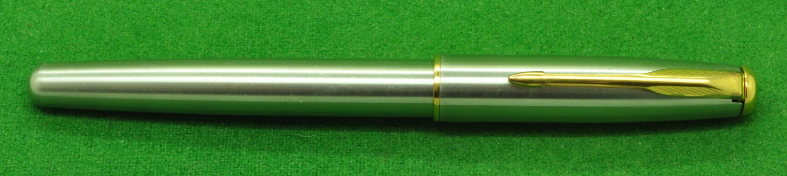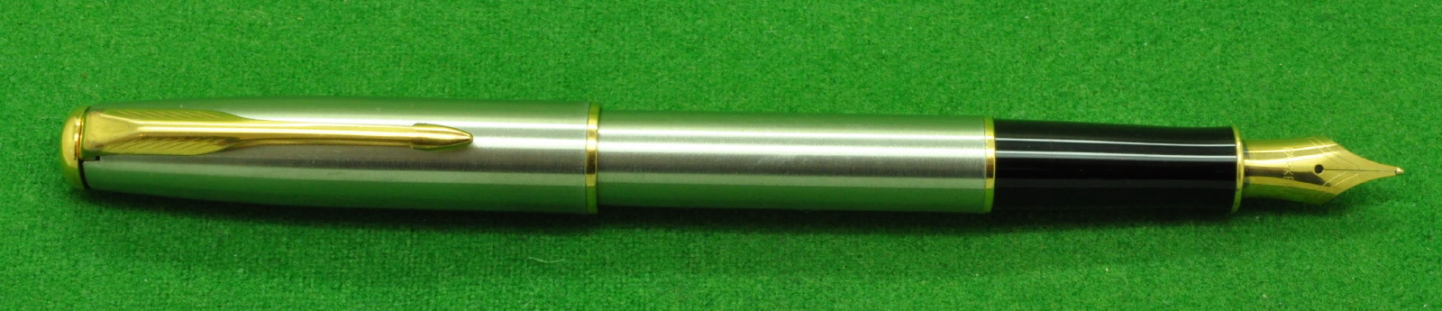 Parker Sonnet Flighter in Stainless with Gold filled trim. In Mint Condition. Fitted with the original ultra Smooth, Semi Flex medium tipped nib