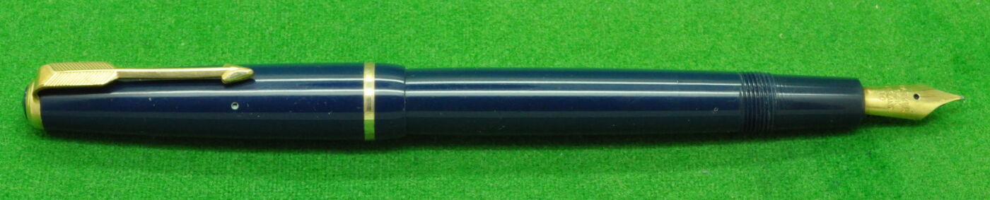 Superb Parker Mark 4 in Midnight Blue with gold fill. In Near MINT condition . Fitted with the original 14kt gold semi flex medium tipped nib
